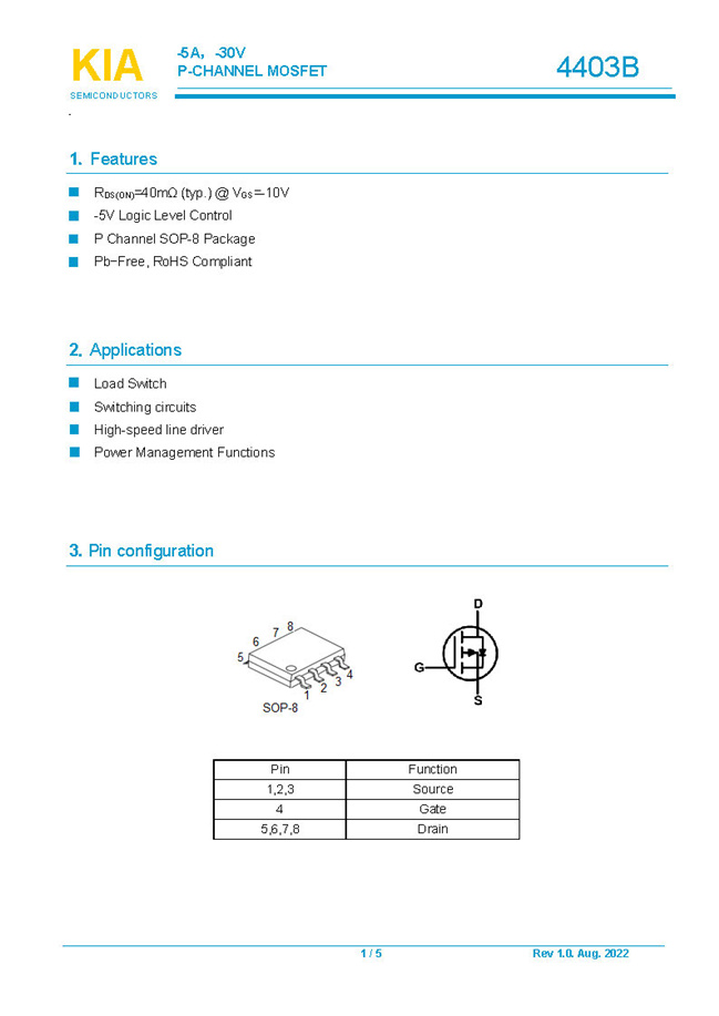 參數(shù): ID(A): -5 BVDSS(V): -30 RDS(ON): 40mΩ Qg(nC): 7.9 Package: SOP-8