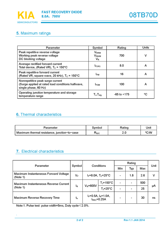 參數(shù): VR(V): 700V IF(A): 8A Trr(ns): 25NS Package: TO-220、252、263