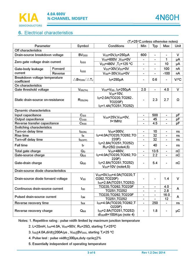 參數(shù): ID(A): 4 BVDSS(V): 600 RDS(ON): 2.7 Qg(nC): 13.5 Package: TO-251、TO-252、TO-220、TO-220F、TO-262