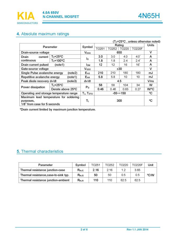 參數(shù): ID(A): 4 BVDSS(V): 650 RDS(ON): 3 Qg(nC): 16 Package: TO-251、TO-252、TO-220、TO-220F