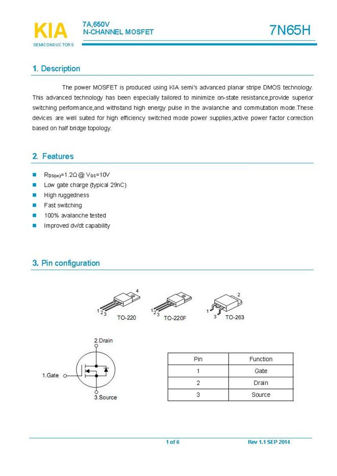 參數(shù): ID(A): 7 BVDSS(V): 650 RDS(ON): 1.4 Qg(nC): 29 Package: TO-263、TO-220、TO-220F