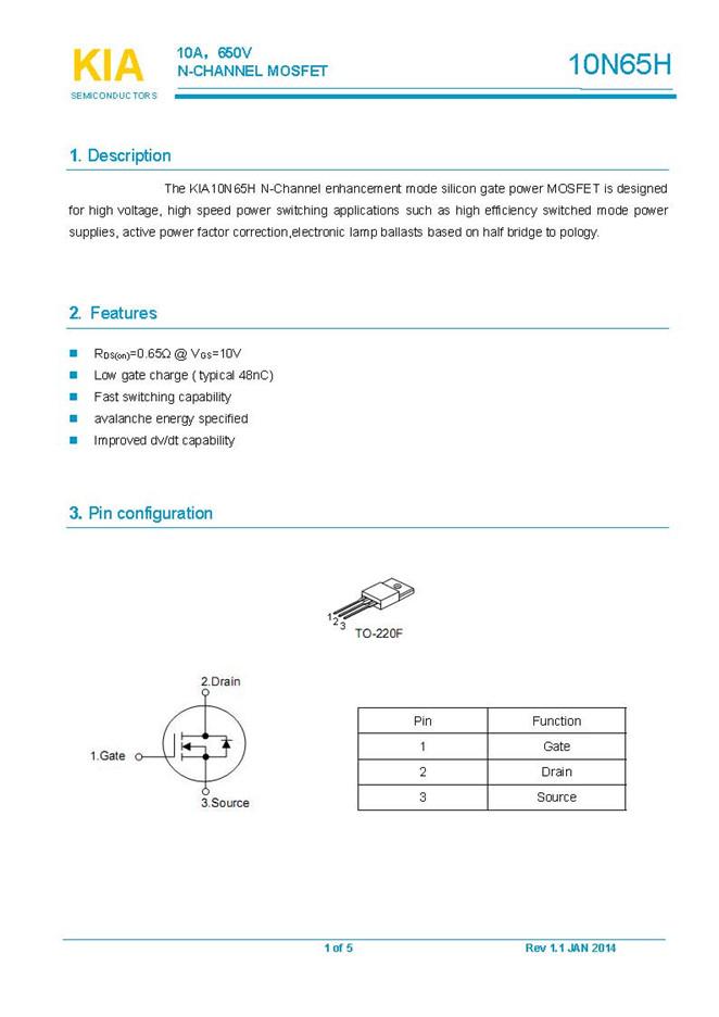 參數(shù): ID(A): 10 BVDSS(V): 650 RDS(ON): 0.65 Qg(nC): 48 Package: TO-220F TO-220